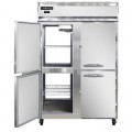 Freezer, pass-thru, two-section, self-contained refrigeration, stainless steel exterior, aluminum interior, standard depth, half-height solid doors, cylinder locks, electronic control with digital display, hi-low alarm, electric condensate evaporator, R290 Hydrocarbon refrigerant, 1 HP, cETLus, NSF