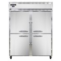 Extra-Wide Refrigerator, reach-in, 57"W, two-section, self-contained refrigeration, stainless steel exterior, aluminum interior, shallow depth, half-height solid doors, cylinder locks, electronic control with digital display, hi-low alarm, R290 hydrocarbon refrigerant, 1/3 HP, cETLus, NSF