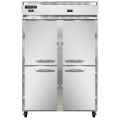 Refrigerator/Freezer, reach-in, 52"W, two-section, self-contained refrigeration, stainless steel front, aluminum interior & ends, standard depth, (4) half-height solid self-closing doors, cylinder locks, electronic control with digital display, freezer can be adjusted to operate as low as -10°F, hi-low alarm, LED interior lighting, (6) epoxy-coated steel shelves, electric condensate evaporator, R290 Hydrocarbon refrigerant, dual 1/4 & 1/2 HP, cETLus, NSF