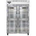 Refrigerator, reach-in display, two-section, self-contained refrigeration, aluminum exterior & interior, stainless steel front, standard depth, narrow hinged glass half doors, cylinder locks, electronic control with digital display, hi-low alarm, electric condensate evaporator, R290 hydrocarbon refrigerant, 1/3 HP, cETLus, NSF, ENERGY STAR®