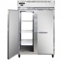 Refrigerator, pass-thru, two-section, self-contained refrigeration, stainless steel exterior, aluminum interior, standard depth, full-height solid doors, cylinder locks, electronic control with digital display, hi-low alarm, electric condensate evaporator, R290 hydrocarbon refrigerant, 1/3 HP, ENERGY STAR®