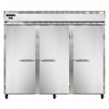 Extra-Wide Freezer, reach-in, 85-1/2"W, three-section, self-contained refrigeration, stainless steel front, aluminum interior & ends, standard depth, full-height solid doors, cylinder locks, electronic control with digital display, hi-low alarm, electric condensate evaporator, R290 Hydrocarbon refrigerant, 1-1/4 HP, cETLus, NSF