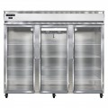 Extra-Wide Freezer, reach-in, 82-1/4" three-section, self-contained refrigeration, aluminum exterior & interior, stainless steel front, standard depth, full-height glass doors, cylinder locks, electronic control with digital display, hi-low alarm, electric condensate evaporator, R290 Hydrocarbon refrigerant, 1-1/4 HP, cETLus, NSF