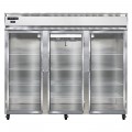 Extra-Wide Freezer, reach-in, 82-1/4"W, three-section, self-contained refrigeration, stainless steel exterior, aluminum interior, standard depth, full-height glass doors, cylinder locks, electronic control with digital display, hi-low alarm, electric condensate evaporator, R290 Hydrocarbon refrigerant, 1-1/4 HP, cETLus, NSF