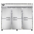 Extra-Wide Refrigerator, reach-in, 85-1/2"W, three-section, self-contained refrigeration, stainless steel front, aluminum interior & ends, standard depth, half-height solid doors, cylinder locks, electronic control with digital display, hi-low alarm, electric condensate evaporator, R290 Hydrocarbon refrigerant, 1/2 HP, cETLus, NSF, ENERGY STAR®