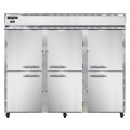 Extra-Wide Refrigerator, reach-in, 85-1/2"W, three-section, self-contained refrigeration, stainless steel exterior & interior, shallow depth, half-height solid doors, cylinder locks, electronic control with digital display, hi-low alarm, R290 Hydrocarbon refrigerant, 1/2 HP, cETLus, NSF