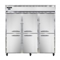 Refrigerator, reach-in, three-section, self-contained refrigeration, stainless steel exterior & interior, shallow depth, half-height solid doors, cylinder locks, electronic control with digital display, hi-low alarm, R290 Hydrocarbon refrigerant, 1/2 HP, cETLus, NSF