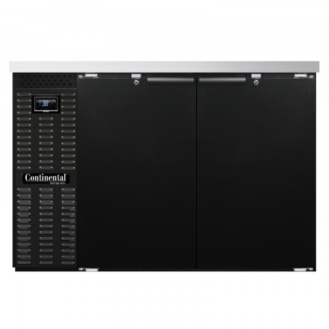 Refrigerated Back Bar Cooler, 50"W, 34-3/4"H, 16.0 cu. ft., front breathing, stainless steel top, (2) doors with locks, electronic controller with digital display & hi-low alarm, black enamel finish exterior, stainless steel interior back & side panels with reinforced stainless steel floor, epoxy coated steel shelves, self-contained refrigeration, R290 hydrocarbon refrigerant, 1/4 HP, cETLus, NSF