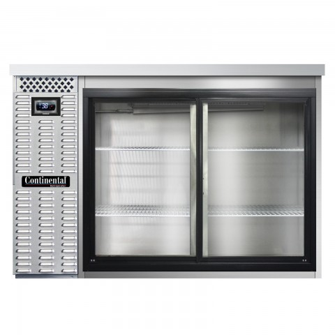 Refrigerated Back Bar Cooler, 50"W, 34-3/4"H, 16.0 cubic feet, front breathing, stainless steel top, sliding glass doors, electronic controller with digital display & hi-low alarm, stainless steel exterior, stainless steel interior back & side panels with reinforced stainless steel floor, epoxy coated steel shelves, self-contained refrigeration, R290 hydrocarbon refrigerant, 1/4 HP, cETLus, NSF