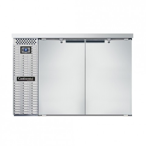 Refrigerated Back Bar Cooler, Shallow Depth, 50"W, 34-3/4"H, 13.0 cu. ft., front breathing, stainless steel top, (2) doors with locks, electronic controller with digital display & hi-low alarm, stainless steel exterior, stainless steel interior back & side panels with reinforced stainless steel floor, epoxy coated steel shelves, self-contained refrigeration, R290 hydrocarbon refrigerant, 1/4 HP, cETLus, NSF