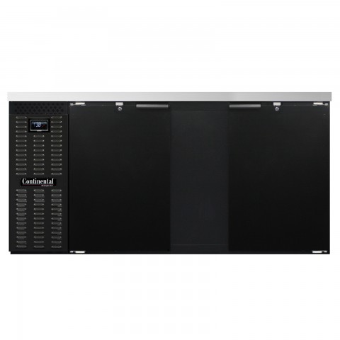 Refrigerated Back Bar Cooler, 69"W, 34-3/4"H, 26.0 cu. ft., front breathing, stainless steel top, (2) doors with locks, electronic controller with digital display & hi-low alarm, black enamel finish exterior, stainless steel interior back & side panels with reinforced stainless steel floor, epoxy coated steel shelves, self-contained refrigeration, R290 hydrocarbon refrigerant, 1/4 HP, cETLus, NSF
