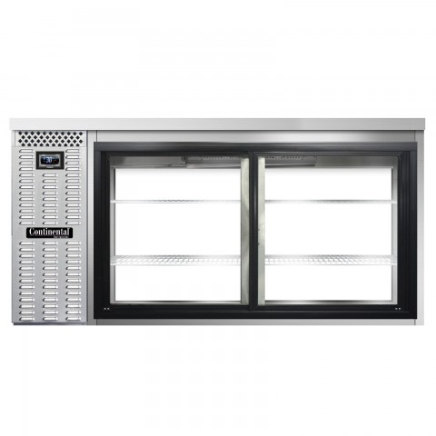 Refrigerated Back Bar Cooler, pass-thru, 69"W, 34-3/4"H, 26.0 cubic feet, front breathing, stainless steel top, sliding glass doors, electronic controller with digital display & hi-low alarm, stainless steel exterior, stainless steel interior back & side panels with reinforced stainless steel floor, epoxy coated steel shelves, self-contained refrigeration, R290 hydrocarbon refrigerant, 1/4 HP, cETLus, NSF
