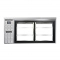 Refrigerated Back Bar Cooler, Shallow Depth, pass-thru, 69"W, 34-3/4"H, stainless steel top, 18.0 cubic feet, front breathing, sliding glass doors, electronic controller with digital display & hi-low alarm, stainless steel exterior, stainless steel interior back & side panels with reinforced stainless steel floor, epoxy coated steel shelves, self-contained refrigeration, R290 hydrocarbon refrigerant, 1/4 HP, cETLus, NSF