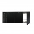 Refrigerated Back Bar Cooler, Shallow Depth, pass-thru, 79"W, 34-3/4"H, 22.0 cu. ft., front breathing, stainless steel top, (6) doors with locks, 25" shallow depth, electronic controller with digital display & hi-low alarm, black enamel finish exterior, stainless steel interior back & side panels with reinforced stainless steel floor, epoxy coated steel shelves, self-contained refrigeration, R290 Hydrocarbon refrigerant, 1/4 HP, cETLus, NSF