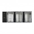 Refrigerated Back Bar Cooler, Shallow Depth, 90"W, 34-3/4"H, 25.0 cubic feet, front breathing, stainless steel top, (3) glass doors with locks, 23" shallow depth, electronic controller with digital display & hi-low alarm, black enamel finish exterior, stainless steel interior back & side panels with reinforced stainless steel floor, epoxy coated steel shelves, self-contained refrigeration, R290 Hydrocarbon refrigerant, 1/4 HP, cETLus, NSF