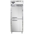 Designer Line Wide Refrigerator, pass-thru, 28-1/2"W, one-section, self-contained refrigeration, stainless steel exterior, aluminum interior, standard depth cabinet, wide half-height solid doors, cylinder locks, electronic control with digital display, hi-low alarm, 6" stainless steel legs, R290 hydrocarbon refrigerant, 1/4 HP