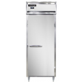 Designer Line Wide Refrigerator, 22 cu. ft. capacity, pass-thru, 28-1/2" wide one-section, self-contained refrigeration, standard depth cabinet, electronic controller with digital display, wide full-height solid door on front, wide full-height glass door on rear, stainless steel exterior & interior, 6" stainless steel legs, NEMA-5-15P, 1/4 HP, cETLus, NSF, Made in the USA