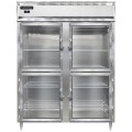 Designer Line Wide Freezer, reach-in, 57"W, two-section, self-contained refrigeration, aluminum exterior & interior, stainless steel front, standard depth cabinet, wide half-height glass doors, cylinder locks, electronic control with digital display, hi-low alarm, 6" stainless steel legs, R290 hydrocarbon refrigerant, 1 HP, cETLus, NSF
