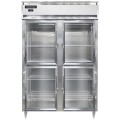 Designer Line Freezer, reach-in, two-section, self-contained refrigeration, stainless steel exterior & interior, shallow depth cabinet, half-height glass doors, cylinder locks, electronic control with digital display, hi-low alarm, 6" stainless steel legs, hydrocarbon refrigerant, 1 1/4 hp, cETLus, NSF