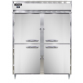 Designer Line Wide Refrigerator, 52 cu. ft. capacity, pass-thru, 57" wide two-section, self-contained refrigeration, standard depth cabinet, electronic controller with digital display, wide full-height stainless steel doors on front, wide full-height glass doors on rear, aluminum exterior & interior, stainless steel front, 6" stainless steel legs, NEMA-5-15P, 1/2 HP, cETLus, NSF, Made in the USA
