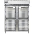 Designer Line Wide Refrigerator, reach-in, 57"W, two-section, self-contained refrigeration, aluminum exterior & interior, stainless steel front, shallow depth cabinet, wide half-height glass doors, cylinder locks, electronic control with digital display, hi-low alarm, 6" stainless steel legs, R290 Hydrocarbon refrigerant, 1/3 HP, cETLus, NSF