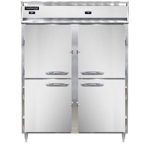 Designer Line Refrigerator/Freezer, pass-thru, 57"W, two-section, self-contained refrigeration, aluminum exterior & interior, stainless steel front & doors, standard depth cabinet, wide half-height solid doors, cylinder locks, electronic control with digital display, hi-low alarm, R290 Hydrocarbon refrigerant, dual 1/4 & 1/2 HP compressors, cETLus, NSF