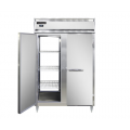 Designer Line Refrigerator/Freezer, pass-thru, two-section, self-contained refrigeration, aluminum exterior & interior, stainless steel front & doors, standard depth cabinet, narrow full-height solid doors, cylinder locks, electronic control with digital display, hi-low alarm, dual 1/4 & 1/2 HP compressors