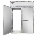 Designer Line Refrigerator, roll-thru, two-section, self-contained refrigeration, stainless steel front, aluminum interior & ends, standard depth cabinet, full-height solid doors, cylinder locks, electronic control with digital display, hi-low alarm, removable stainless steel ramps, R290 hydrocarbon refrigerant, 1/2 HP, cETLus, NSF