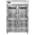 Designer Line Refrigerator, reach-in, two-section, self-contained refrigeration, aluminum exterior & interior, stainless steel front, standard depth cabinet, half-height glass doors, cylinder locks, electronic control with digital display, hi-low alarm, 6" stainless steel legs, R290 hydrocarbon refrigerant, 1/3 HP, cETLus, NSF