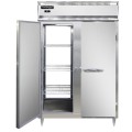 Designer Line Refrigerator, pass-thru, two-section, self-contained refrigeration, aluminum exterior & interior, stainless steel front, standard depth cabinet, full-height stainless steel doors, cylinder locks, electronic control with digital display, hi-low alarm, 6" stainless steel legs, R290 hydrocarbon refrigerant, 1/3 HP, ENERGY STAR®