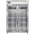 Designer Line Refrigerator, reach-in, two-section, 50.0 cu. ft., self-contained refrigeration, stainless steel exterior, aluminum interior, standard depth cabinet, full-height glass doors, cylinder locks, electronic control with digital display, hi-low alarm, 6" stainless steel legs, R290 hydrocarbon refrigerant, 1/3 HP, cETLus, NSF