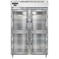 Designer Line Refrigerator, reach-in, two-section, self-contained refrigeration, aluminum exterior & interior, stainless steel front, shallow depth cabinet, half-height glass doors, cylinder locks, electronic control with digital display, hi-low alarm, 6" stainless steel legs, R290 hydrocarbon refrigerant, 1/3 HP, cETLus, NSF