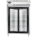 Designer Line Refrigerator, reach-in, two-section, self-contained refrigeration, aluminum exterior & interior, stainless steel front, shallow depth cabinet, full-height sliding glass doors, cylinder locks, electronic control with digital display, hi-low alarm, 6" stainless steel legs, R290 Hydrocarbon refrigerant, 1/3 HP, cETLus, NSF