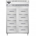 Designer Line Refrigerator, fish/poultry file, vertical refrigerated cabinet, two-section, (8) drawers, self-contained refrigeration, 300 stainless steel exterior & interior, electronic control with digital display, hi-low alarm, R290 hydrocarbon refrigerant, 1/3 HP, cETLus, NSF