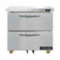 Designer Line Undercounter Refrigerator, 32"W, one-section, (2) drawers, accommodates (1) 12 x 20 x 6 pan per drawer or (1) 1/2 x 6 pan & (2) 1/3 x 6 pans per drawer capacity (supplied by others), stainless steel exterior & interior, stainless steel top, 1-3/8" diameter plate casters, front breathing, electronic control with digital display, hi-low alarm, rear mounted self-contained refrigeration, R290 hydrocarbon refrigerant, 1/5 hp, cETLus, NSF