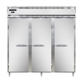 Designer Line Refrigerator, pass-thru, 78"W, three-section, 72 cu. ft. capacity, self-contained refrigeration, aluminum exterior & interior, stainless steel front, standard depth cabinet, full-height stainless steel doors, cylinder locks, electronic control with digital display, hi-low alarm, 6" stainless steel legs, R290 Hydrocarbon refrigerant, 1/2 HP, cETLus, NSF