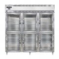 Designer Line Refrigerator, reach-in, three-section, self-contained refrigeration, stainless steel exterior & interior, standard depth cabinet, half-height glass doors, cylinder locks, electronic control with digital display, hi-low alarm, 6" stainless steel legs, R290 Hydrocarbon refrigerant, 1/2 HP, cETLus, NSF