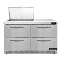 Designer Line Mighty Top Sandwich Unit, Front Breather, 48"W, two-section, (12) 1/6 size x 4" deep pans with 8" cutting board, (4) drawers, accommodates (1) 12 x 18 x 6 pan per drawer or (1) 1/2 x 6 pan & (1) 1/3 x 6 pans per drawer capacity (supplied by others), stainless steel top, front, sides & interior, electronic control with digital display, hi-low alarm, 3-3/4" casters, rear mounted self-contained refrigeration, automatic hot gas condensate evaporator, R290 hydrocarbon refrigerant, 1/4 hp, cETLus, NSF