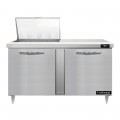 Designer Line Mighty Top Sandwich Unit, 60"W, two-section, (12) 1/6 size x 4" deep pans with 8" cutting board, (2) field rehingeable doors, stainless steel top, front, sides & interior, electronic control with digital display, hi-low alarm, 6" adjustable legs, rear mounted self-contained refrigeration, automatic hot gas condensate evaporator, R290 hydrocarbon refrigerant, 1/3 HP, cETLus, NSF