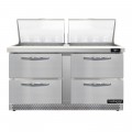 Designer Line Mighty Top Sandwich Unit, Front Breather, 60"W, two-section, (24) 1/6 size x 4" deep pans with 8" cutting board, (4) drawers, accommodates (1) 12 x 20 x 6 pan per drawer (supplied by others), stainless steel top, front, sides & interior, electronic control with digital display, hi-low alarm, 3-3/4" casters, rear mounted self-contained refrigeration, automatic hot gas condensate evaporator, R290 hydrocarbon refrigerant, 1/3 HP, cETLus, NSF