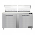 Designer Line Mighty Top Sandwich Unit, 60"W, two-section, (24) 1/6 size x 4" deep pans with 8" cutting board, (2) field rehingeable doors, stainless steel top, front, sides & interior, electronic control with digital display, hi-low alarm, 6" adjustable legs, rear mounted self-contained refrigeration, automatic hot gas condensate evaporator, R290 hydrocarbon refrigerant, 1/3 HP, cETLus, NSF