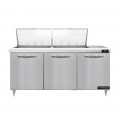 Designer Line Mighty Top Sandwich Unit, 72"W, three-section, (24) 1/6 size x 4" deep pans with 8" cutting board, (3) field rehingeable doors, stainless steel top, front, sides & interior, electronic control with digital display, hi-low alarm, 6" adjustable legs, rear mounted self-contained refrigeration, automatic hot gas condensate evaporator, R290 hydrocarbon refrigerant, 1/3 HP, cETLus, NSF
