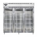 Designer Line Freezer, reach-in, three-section, self-contained refrigeration, stainless steel exterior, aluminum interior, standard depth cabinet, full-height glass doors, cylinder locks, electronic control with digital display, hi-low alarm, 6" stainless steel legs, 2-1/2 HP, cETLus, NSF