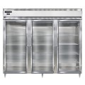 Designer Line Wide Freezer, reach-in, 85-1/2"W, three-section, self-contained refrigeration, aluminum exterior & interior, stainless steel front, standard depth cabinet, wide full-height glass doors, cylinder locks, electronic control with digital display, hi-low alarm, 6" stainless steel legs, 2-1/2 HP, cETLus, NSF
