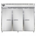 Designer Line Wide Freezer, pass-thru, 85-1/2"W, three-section, self-contained refrigeration, aluminum exterior & interior, stainless steel front, standard depth cabinet, wide full-height solid doors, cylinder locks, electronic control with digital display, hi-low alarm, 6" stainless steel legs, 1 HP, cETLus, NSF