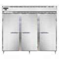Designer Line Wide Freezer, pass-thru, 85-1/2"W, three-section, self-contained refrigeration, stainless steel exterior, aluminum interior, standard depth cabinet, wide full-height solid doors, cylinder locks, electronic control with digital display, hi-low alarm, 6" stainless steel legs, 1 HP, cETLus, NSF