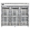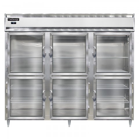 Designer Line Wide Freezer, reach-in, 85-1/2"W, three-section, self-contained refrigeration, stainless steel exterior & interior, standard depth cabinet, wide half-height glass doors, cylinder locks, electronic control with digital display, hi-low alarm, 6" stainless steel legs, 2 1/2HP, cETLus, NSF
