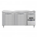 Designer Line Refrigerated Base Worktop Unit, 68"W, reinforced stainless steel work top, stainless steel exterior, front, sides & interior, (2) full & (1) half height field rehingeable doors, 6" adjustable stainless steel legs, electronic control, off-cycle defrost, 1/4 HP, side-mounted refrigeration, R290 hydrocarbon refrigerant, cETLus, NSF, ENERGY STAR®
