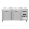 Designer Line Refrigerated Base Worktop Unit, 68"W, reinforced stainless steel work top with 6"H backsplash, stainless steel exterior, front, sides & interior, (2) full & (1) half height field rehingeable doors, 6" adjustable stainless steel legs, electronic control, off-cycle defrost, 1/4 HP, side-mounted refrigeration, R290 hydrocarbon refrigerant, cETLus, NSF, ENERGY STAR®