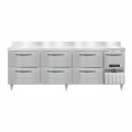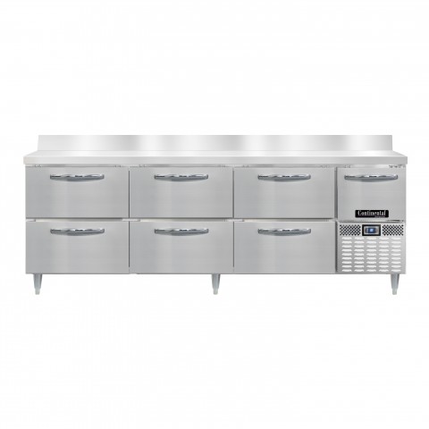Designer Line Refrigerated Base Worktop Unit, 93"W, reinforced stainless steel work top with 6"H backsplash, stainless steel exterior, front, sides & interior, (6) drawers & (1) half height field rehingeable door, 6" adjustable stainless steel legs, electronic control, off-cycle defrost, 1/4 HP, side-mounted refrigeration, R290 hydrocarbon refrigerant, cETLus, NSF